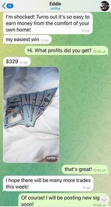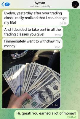 After a few failed attempts at trading on my own, I decided to join Evelyn to see what I could do better and listen to the signals there. Since then, I have started spending a few hours trading. Evelyn trades with her subscribers and I just copy her trades and make a profit. I made $1000 last week! That's very cool! Thank you so much!