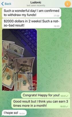 At first, the thought of getting into trading scared me, and I worried about the potential financial burden and time commitment associated with my full-time job. However, it has been an incredible journey where step-by-step guidance has made the complex world of trading accessible. Whenever I doubted my abilities or faced obstacles, it was always Evelyn who helped me overcome them. Now I'm not only trading, I'm making a steady profit, proving that personal success in trading is an achievable goal.