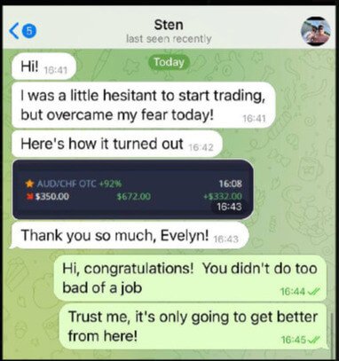 After a few failed attempts at trading on my own, I decided to join Evelyn to see what I could do better and listen to the signals there. Since then, I have started spending a few hours trading. Evelyn trades with her subscribers and I just copy her trades and make a profit. I made $1000 last week! That's very cool! Thank you so much!