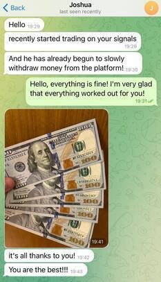 I've been in this group for about a month now and I can honestly say it's one of the best decisions I've ever made. The signals sent are amazing and I have made huge profits. I will be with Evelyn forever and I would recommend anyone to join this group if they want to make money!